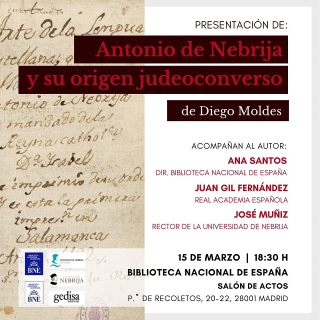Antonio de Nebrija y su origen judeoconverso nos permite aproximarnos de forma diferente a este gran humanista, acusado de hereje por la Inquisición, cronista de los Reyes Católicos, latinista ilustre y de más que probable, apunta Diego Moldes, origen judío.