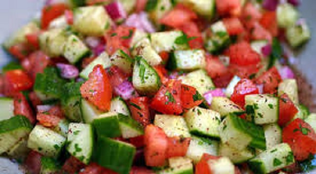 Pimiento, cebolla, pepino, tomate, y frutos dulces como pera, cerezas deshuesadas, higos, manzana, naranja…También se le puede añadir garbanzos o alubias, lentejas o arroz cocido. Sean genios a la hora de aliñar: aceite oliva, sal y vinagre.