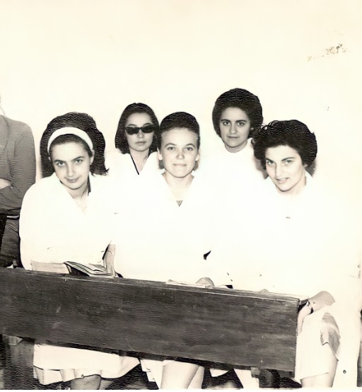 Alicia (Benmergui) Wischenivetzky, primera por la izquierda en la fila inferior en una imagen tomada en el instituto judío de su localidad natal, Rivera (provincia de Buenos Aires)