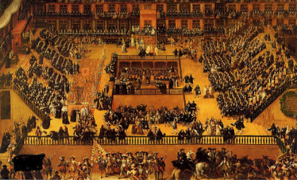 El día 15 de mayo de 1462, se publica la bula Dum fidei catholicae, por la que el papa Pío II (1458 – 1464) da instrucciones a su nuncio en Castilla, y obispo de León (1464 – 1469), Antonio Jacobo de Veneris, para que proceda al nombramiento de inquisidores (en la imagen, auto de fe en Madrid).