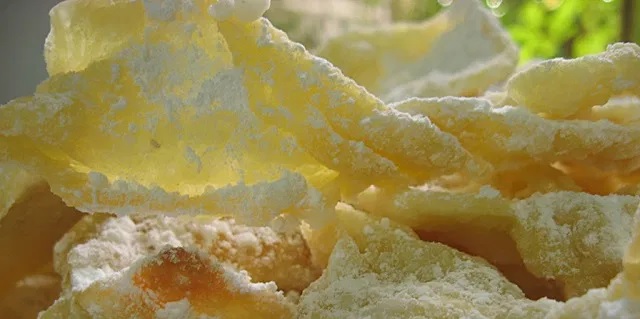 Una cucharadita de licor anisado o al gusto (puede ser también vino de kidush); 1 huevo grande batido, 1 pizca de sal, 100 grs de harina floja tamizada. Aceite de oliva virgen extra para freír calentado poco a poco (con la peladura de una naranja para aportar aroma a la preparación).