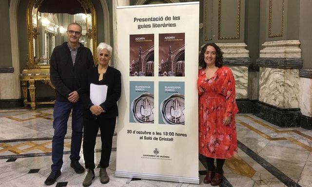 Superando la dificultad de establecer un recorrido por espacios, lugares y edificios ya transformados o desaparecidos -testimonio de una vida judía y criptojudía en muchos momentos oculta también en el pasado- Azulay (a la izquierda de la imagen) de la mano y el recuerdo de Blanquina March (la madre de Lluís Vives), nos invita a conocer la huella judía de su ciudad con una guía bilingüe castellano-valenciano realizada desde la dulzura y el sentimiento.
