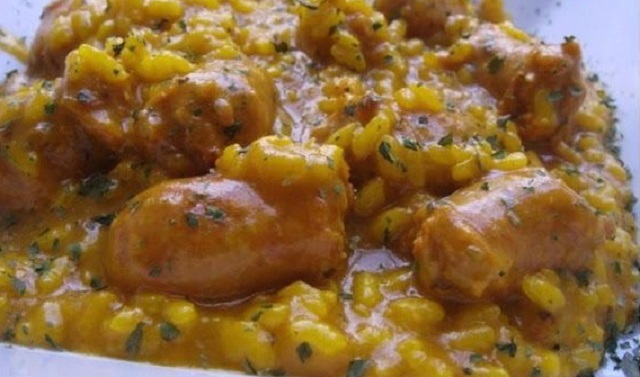 Cazuela de arroz con salchichas de ave